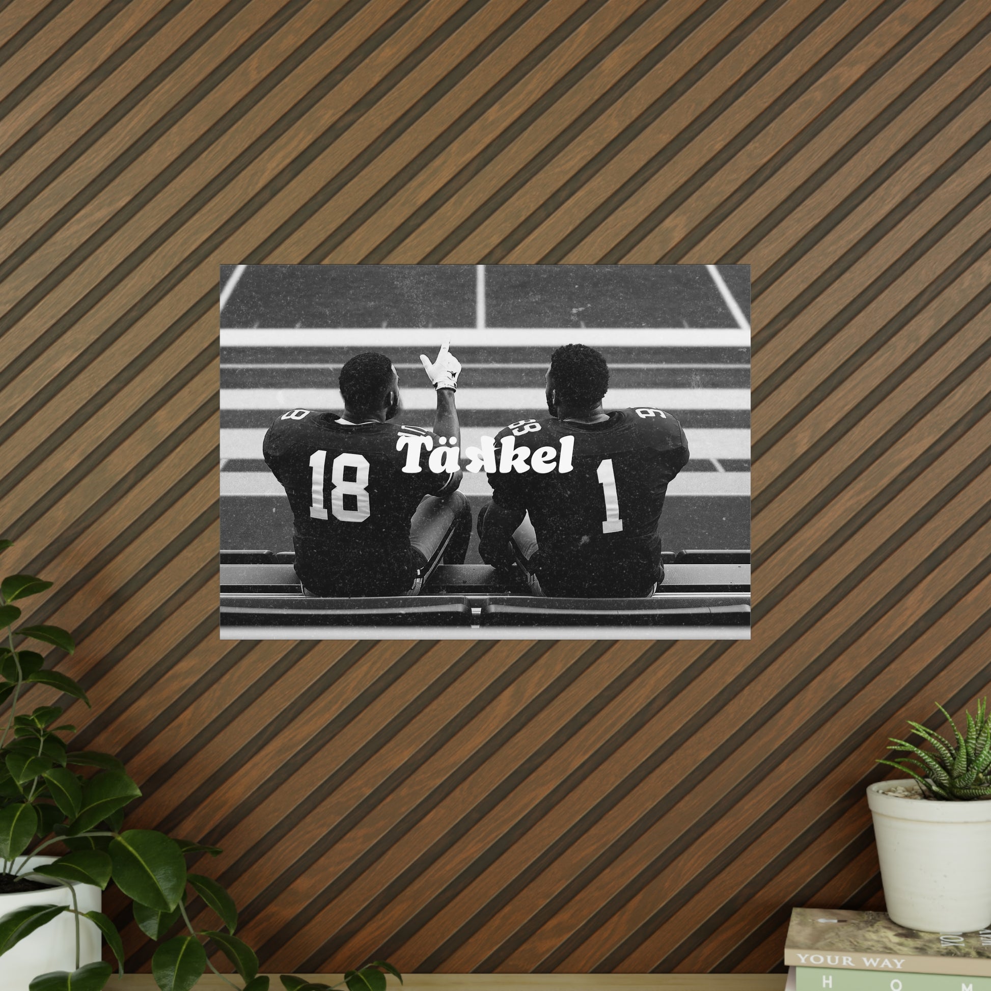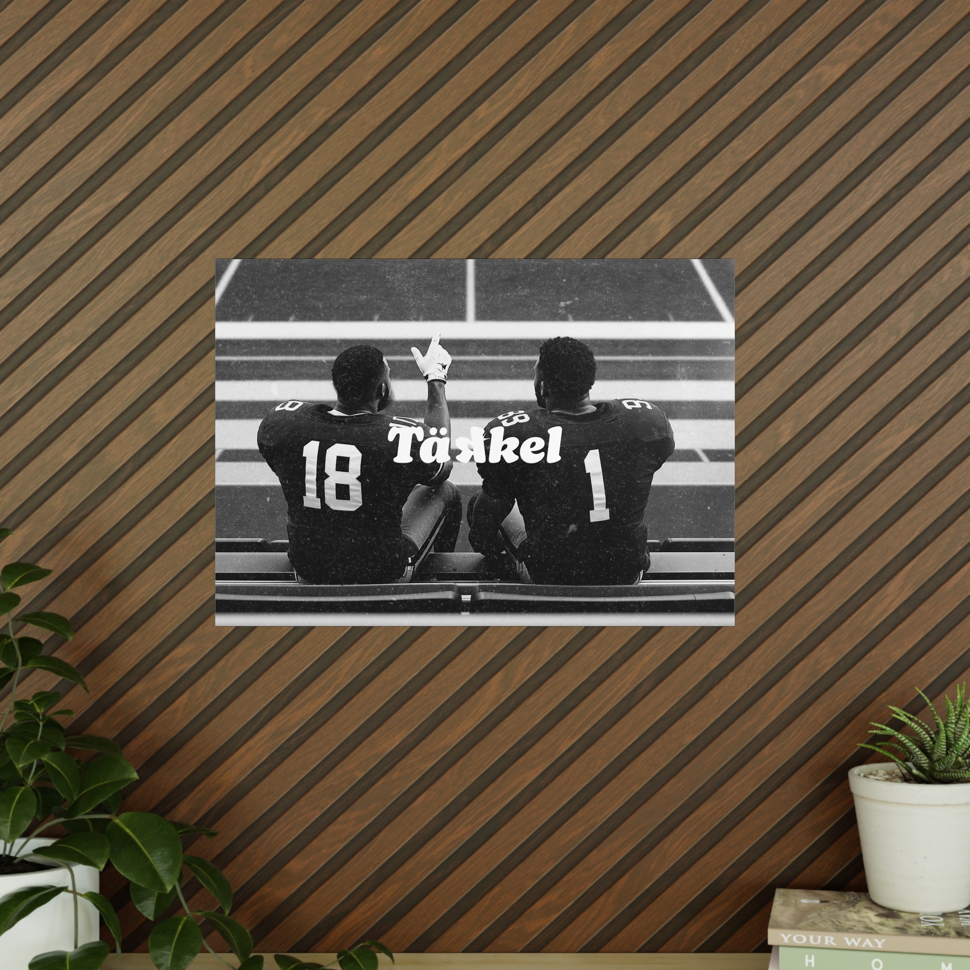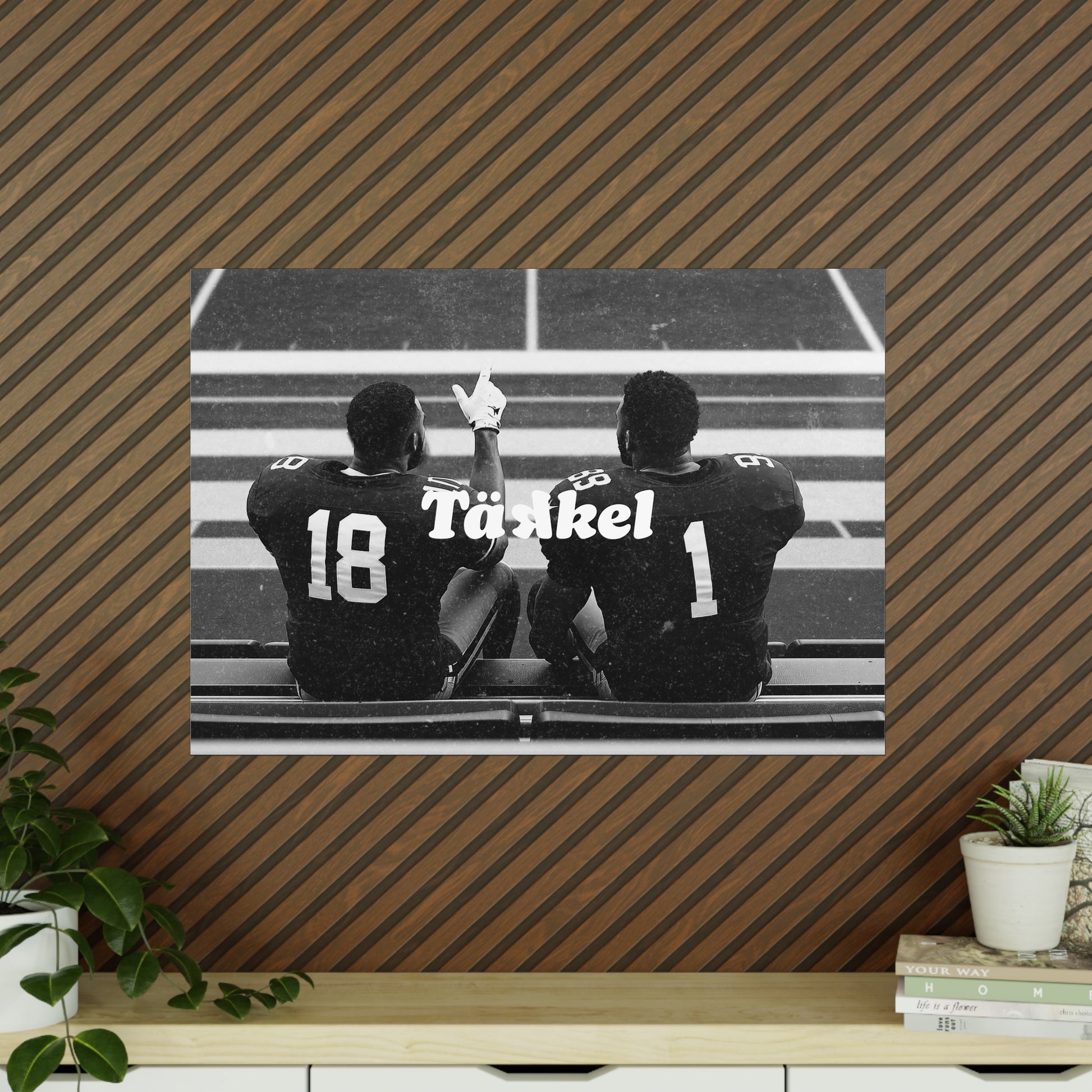 Football ist mehr als nur ein Spiel – es ist Zusammenhalt, Vertrauen und Brüderlichkeit. Dieses TÄKKEL Posterzeigt zwei Spieler Schulter an Schulter auf der Bank – ein Moment voller Ruhe, Kraft und Teamgeist. Perfekt für alle, die Football nicht nur spielen, sondern leben.